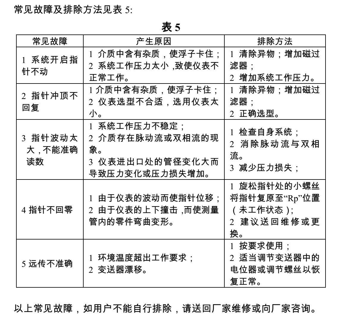 ★??若開啟流量計時,由于管道內沒有壓力或系統還未達到儀表正常使用的工作壓力,必須緩慢開啟控制閥,直到系統正常,儀表方可使用,否則容易造成指針跳動或浮子的突然撞擊而損壞的現象。